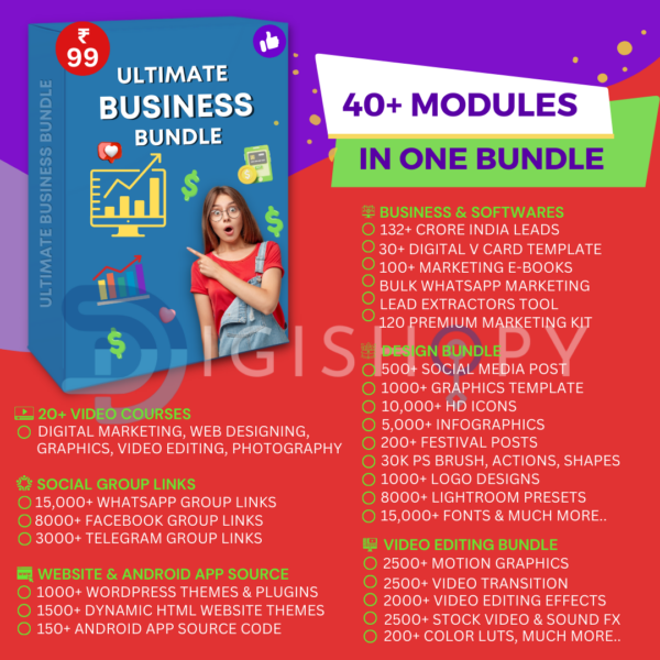 This Business Bundle contains a Magical Asset to Grow Your Startup or Existing Business and it’s useful for any industry professional. All in one solution for Marketing, Designing, Editing, Creative Needs at a very discounted price. Each professional will find something for himself, quicker do the work to earn even more money.